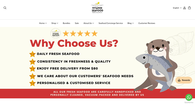 Seafood for all your needs – from BBQ parties to your next steamboat reunion, Vitamin Seafood got you covered with free delivery islandwide for orders above S$80. For orders below S$80, a delivery fee of S$15 applies. Like many seafood ecommerce suppliers in Singapore, Vitamin Seafood started out from traditional wet markets and ventured online to reach more people.